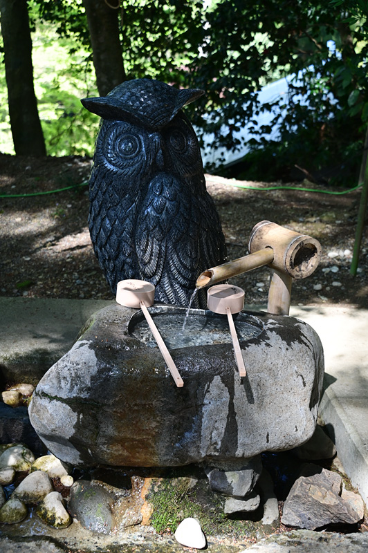 主祭神の天日鷲命との関係でいえば鷲のほうが適任じゃないのというツッコミをいれたいところだが(笑)、長い歴史の中で 鷲 ⇒ 鳥 とまるめた認識となり、結果的に梟(ふくろう) が神社のシンボルとなったらしい。 境内にはとにかくこのフクロウのモチーフが多く散在している。