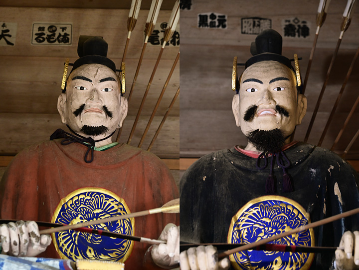 実を言えばこの隋神像も、仏教寺院の仁王像(天部に属する仏教ファミリーの用心棒役)に対抗して置かれたもので、原初の古神道には存在していなかった。「寺に用心棒が居るなら、神社にも用心棒を置くことにしよう」 という対抗心で後付け設定されたものだから、この隋神には名前もなければ神話のエピソードもない。特に記紀神話にエピソードが無いということは、神様誕生の起源がそれ以降であることを示唆している。
