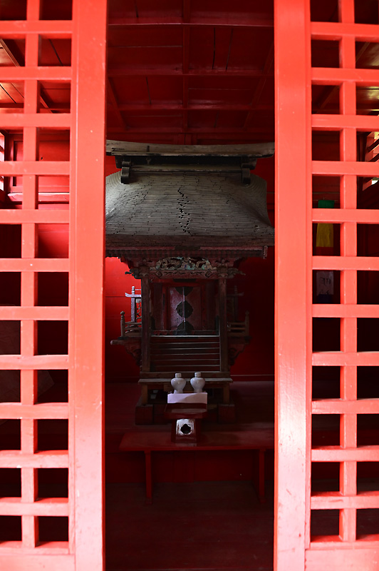 ちょうど稲荷神社の鞘堂(※)が開いていたので中の社殿を拝察。 神寂(かむさび)ていて 「何ごとのおはします」 感がなかなか良い。