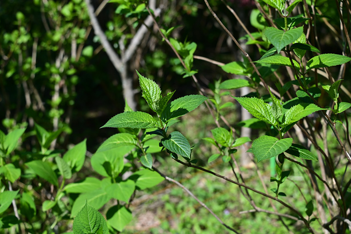 山頂から社務所に戻る道はちょっとした園地になっていた。紫陽花が多く植えられているのだけれどまだ見頃には早く、花芽も出ていない。6月くらいに来るといい感じで散策できるかもしれないな。
