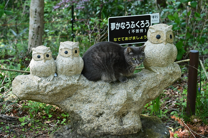 その先には、神社の象徴ともなっているフクロウの像があった。 当て字では "不苦労" となっていて縁起がよいとされている。