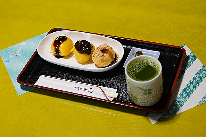 神社を降りる前に茶屋で団子などを頂いてみた。何が入っているのかよく分からないけれど、ちょっと変わった風味で良かったでござる。