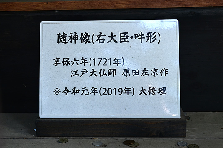 神社を開いたのが仏教の坊さんといういささか不思議な状況は、神仏習合のひとつの形態(※)と思うべきなのだろう。坊さんとしては仏寺を開いたつもりで、地元住民の認識は 「古来の神様を今風に祀っただけ」 という状況を思えばわかりやすい。実際、境内には別当寺であった伍智院の跡があり、明治維新の神仏分離令がなければ現在でも仏寺と併設という状況だったことだろう。