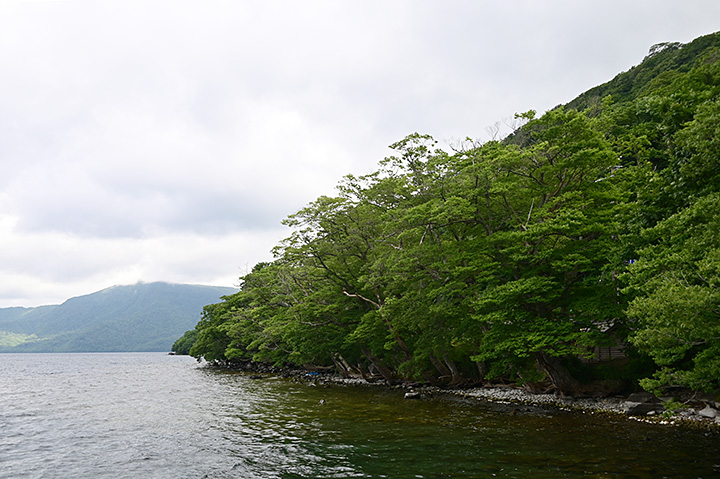 さて展望台を出ると、R103はカルデラ内に降り、湖畔を通って奥入瀬方面へと続いていく。 対向車はなく、あたりは鳥の声がいくらか聞こえるくらいでとても静かだ。