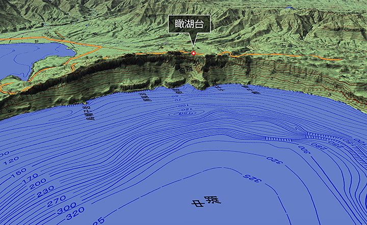 湖畔をもう少々進み、R103からちょっと逸れて瞰湖台(かんこだい)にやってきた。"展望台" と表現したほうが平易でわかりやすそうな気がするけれども、「瞰」 の字には見降ろすというニュアンスがあるのでこれはこれで正しい。
