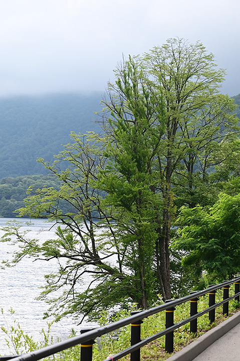 さて瞰湖台を過ぎてR103に再合流し、さらに湖畔を北上していく。あたりはブナの原生林がつづく。 相変わらず、他のクルマとすれ違うことはない。有名な観光地の筈なのに人口密度はおそろしく低いようだ。