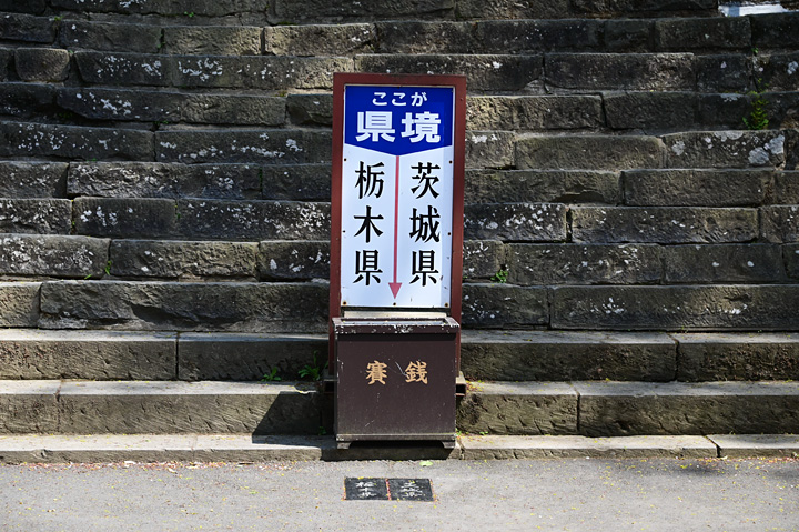 さてウンチクはそのあたりにして境内を進んでみよう。正面に鳥居が見え、右と左にそれぞれ社務所がある。実はこの境内には栃木県/茨城県の県境が通っていて、社務所も栃木側(写真左)/茨城側(写真右)にそれぞれある。参拝者の半分くらいは、この境内を通る県境の面白さを見る為に来ているようだ。