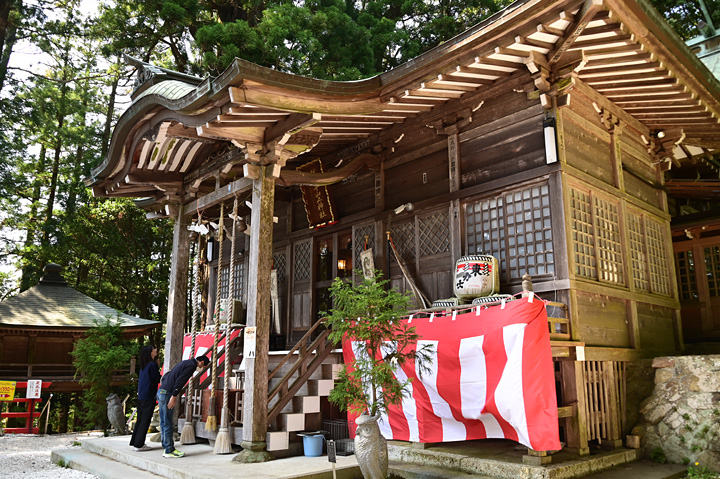 ※鞘堂(さやどう)とは神社の社殿が風雨、降雪等で痛まないように周囲を覆うように建てられるお堂のこと。