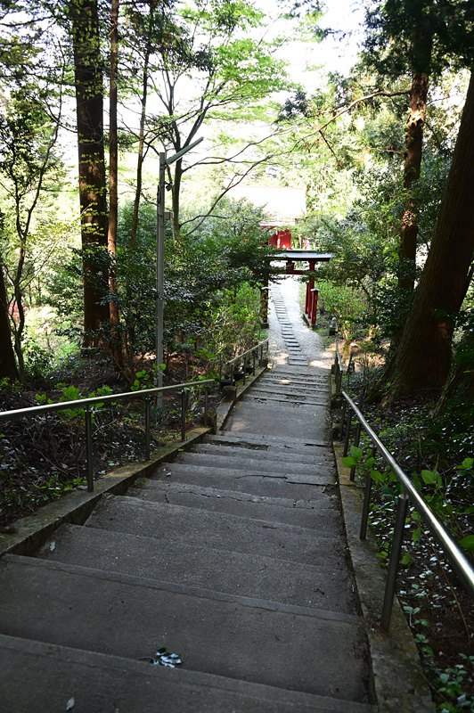 さて山頂は極めたので北回りで降りてみよう。ここから先はちょっとした園地になっていて、散策路が続いている。 奥にちょこっと見えているのは摂社にあたる稲荷神社だ。