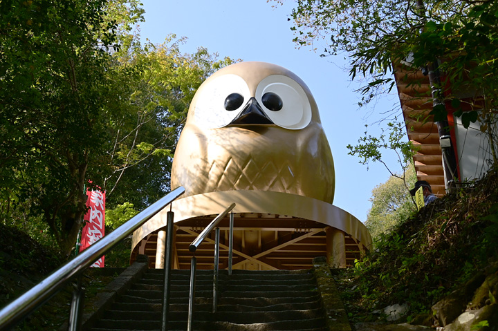 その先には、神社の象徴ともなっているフクロウの像があった。 当て字では "不苦労" となっていて縁起がよいとされている。