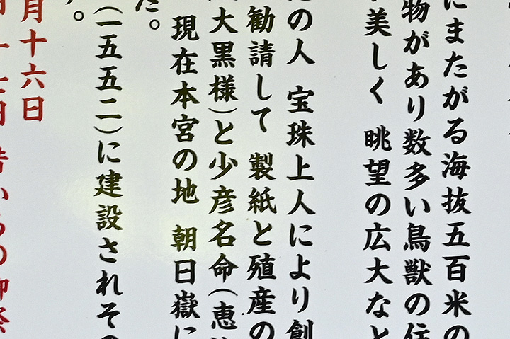 ちなみにこの宝珠上人は阿波国から製紙の技術を持ち込んだとされ、伝統産業である烏山和紙にその片鱗が伺える。神社の主祭神:天日鷲命は製紙業の神様ともされるので、勧請の動機としては殖産興業の側面もあったのかもしれない。