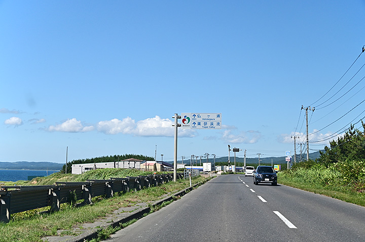 横浜を出てしばらく北に向かうとむつ市の領域に入る。この写真は横浜町の北端のあたりで、海岸線ぎりぎりまで山の斜面がきているので道路も海沿いを走り、眺めは良い。 これがむつ市に入って後背地に余裕がでると、道路が内陸側に引っ込んで視界が通らなくなる。 海の風景を愉しむなら横浜町にいるうちにカメラを構えたほうがいい。