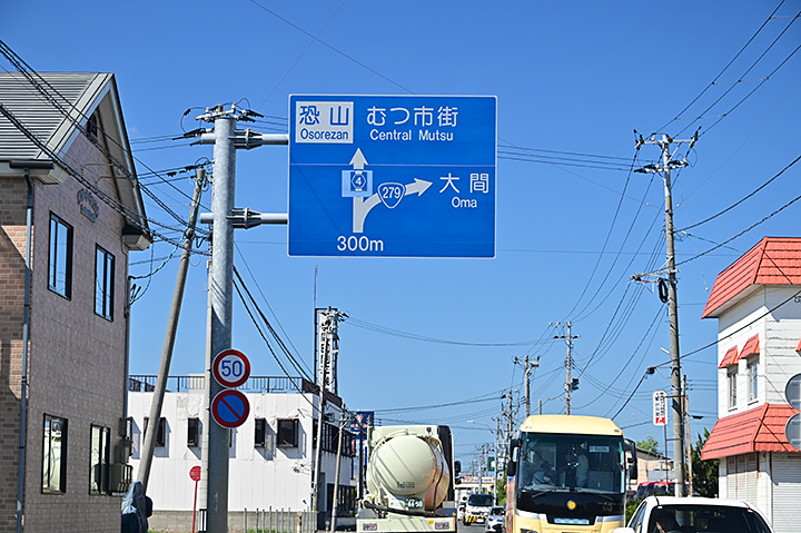ここからはむつ市の中心地である田名部(たなぶ)を目指していく。ちなみに "むつ市" とは昭和35年に田名部市から改称されたもので、日本で初めて登場した平仮名の自治体だった。 筆者的には 「もうすこし歴史と威厳を感じさせる名前でも良かったのでは」 と思わないでもないけれど、ご当地の決めたことなので異論は挟まない。