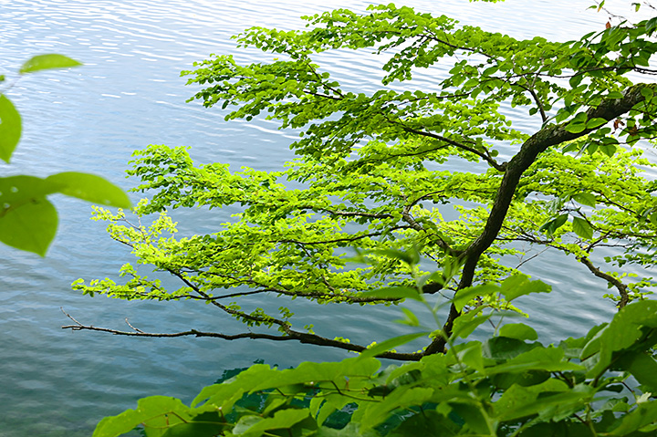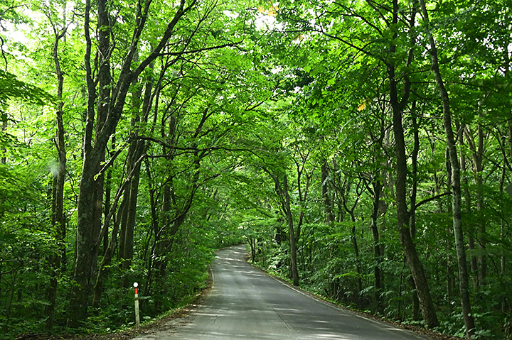 さて瞰湖台を過ぎてR103に再合流し、さらに湖畔を北上していく。あたりはブナの原生林がつづく。 相変わらず、他のクルマとすれ違うことはない。有名な観光地の筈なのに人口密度はおそろしく低いようだ。
