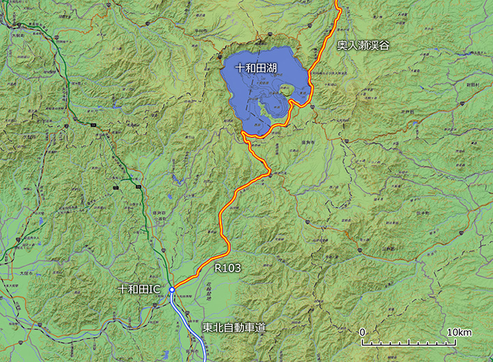 さてここからは一般道であるR103を行くことになる。この道は秋田県大館市から十和田湖を経由して青森市までを結ぶ幹線道路で、奥入瀬渓谷と並走する唯一の道路でもある。