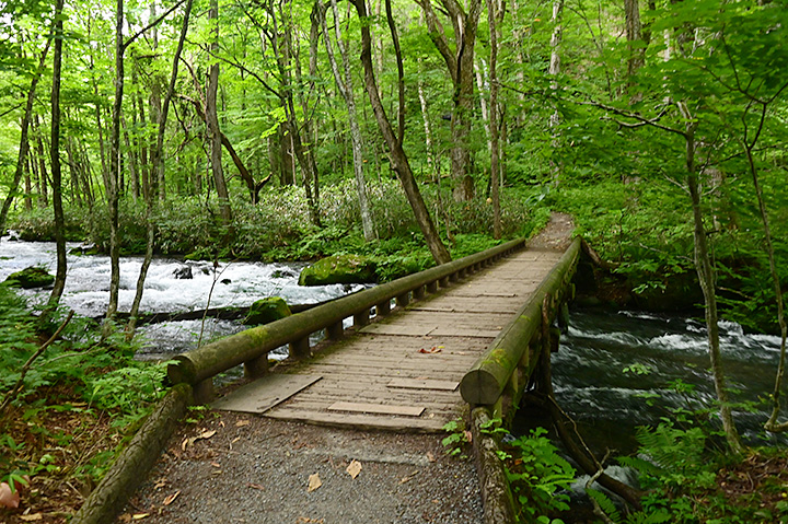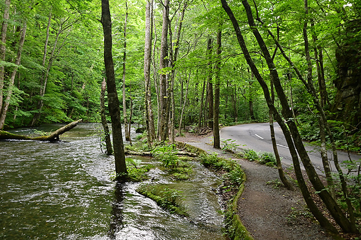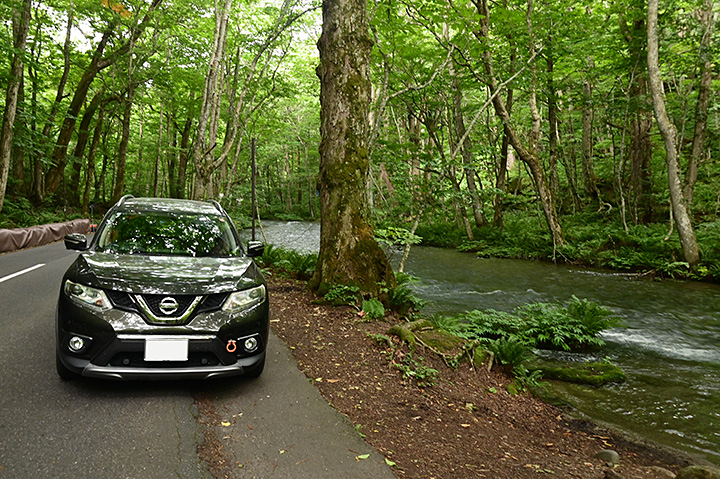 ちなみに奥入瀬川の観光ピークは新緑の5月と紅葉の10月だそうで、この時期はマイカーの乗入れ規制がある(※)。 混雑期には路肩にクルマを停めて散策などということは出来ず、基本的に走り抜けるだけだ。その意味では、7月というのは混雑もなく緑も豊かで、筆者は良い季節に来たといえそうだ。