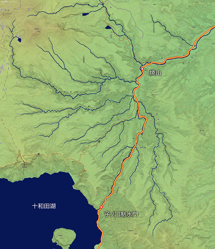 この川筋に沿って、R103が十和田市街方面に向かって伸びている。 ここから先は、この国道に添って川を追いかけてみよう。